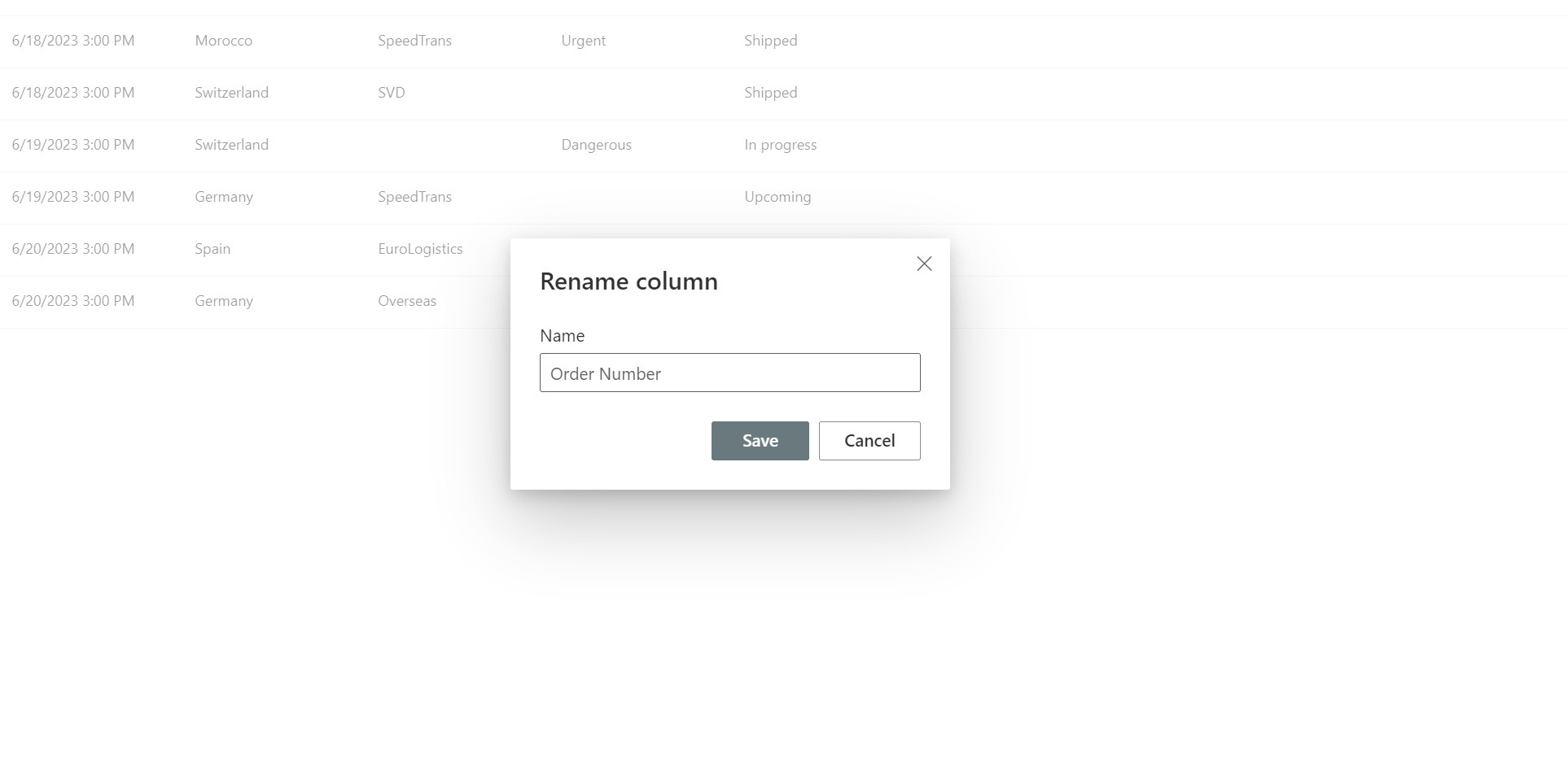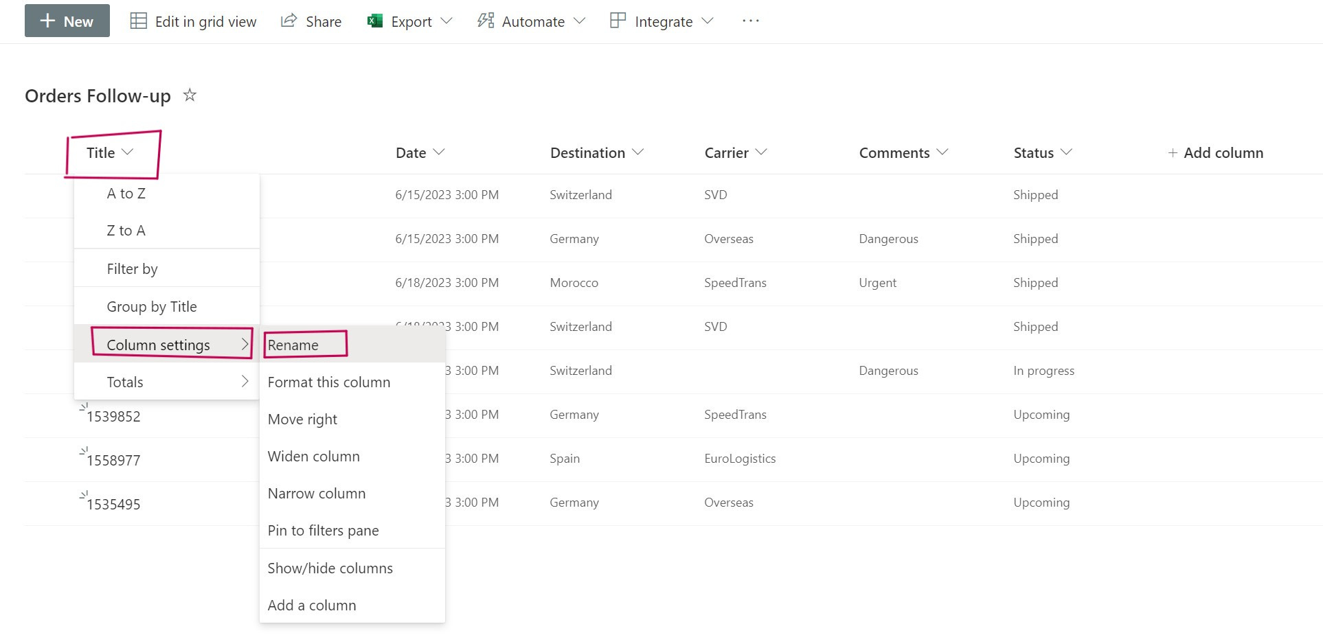 First, let's rename our "Title" column to "Order number" to make it more meaningful.