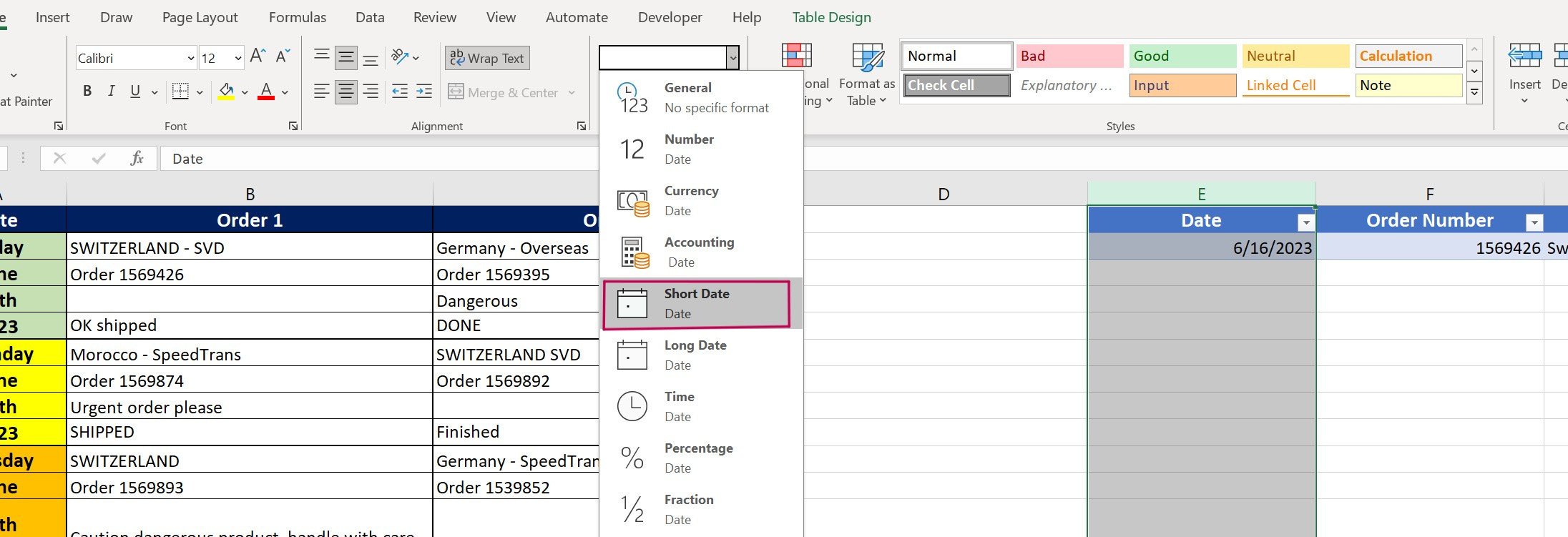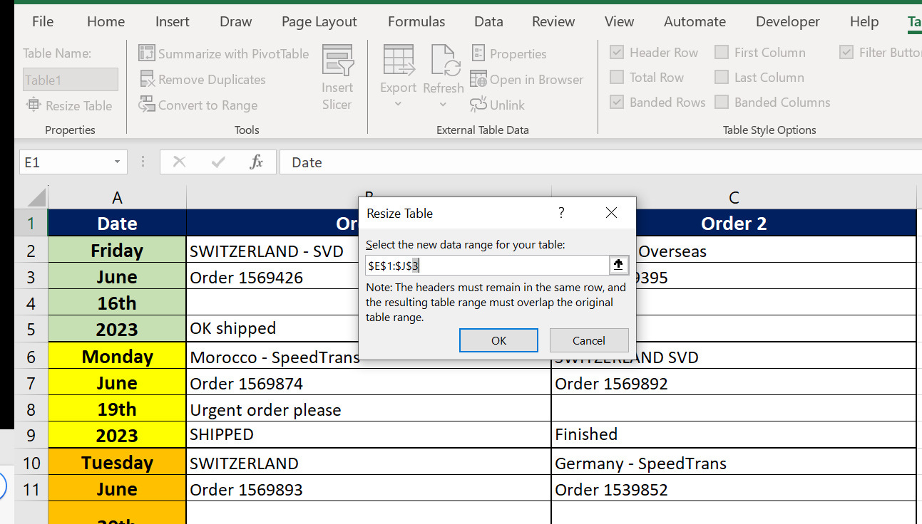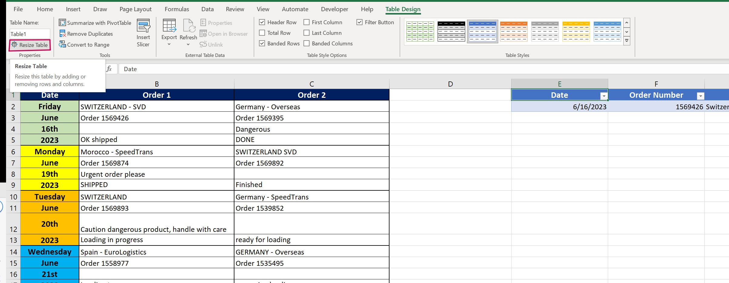 If not: click on cell E1 ("Date") and go to "Table Design" (as indicated in my screenshot):