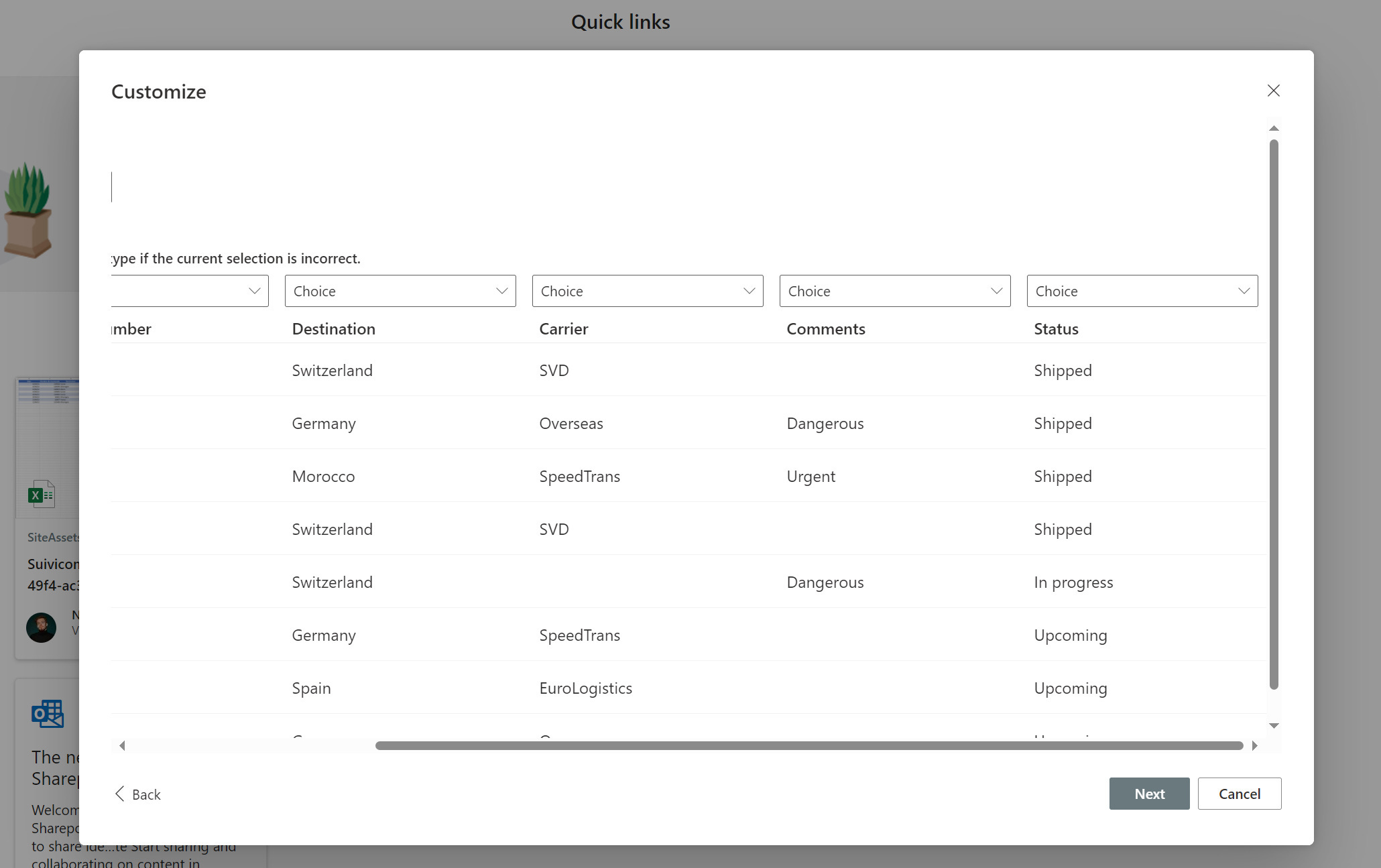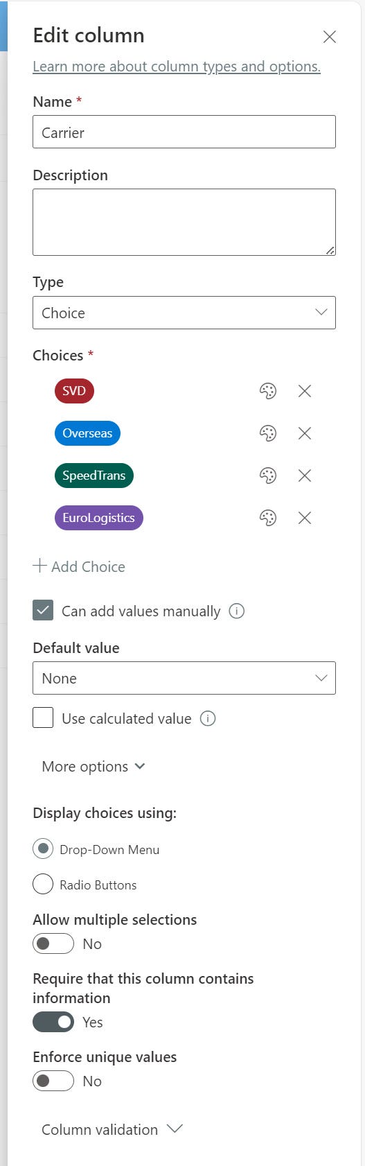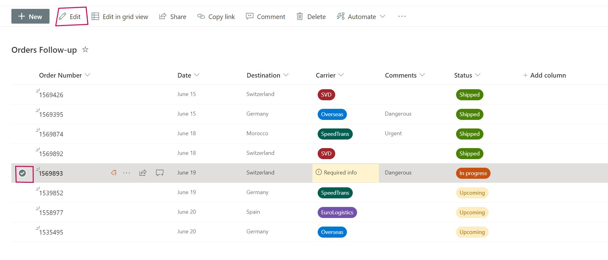 You've probably already noticed that we have a typo in one of our lines, as the carrier is missing. We've made the column mandatory, so SharePoint wants us to add the missing item.