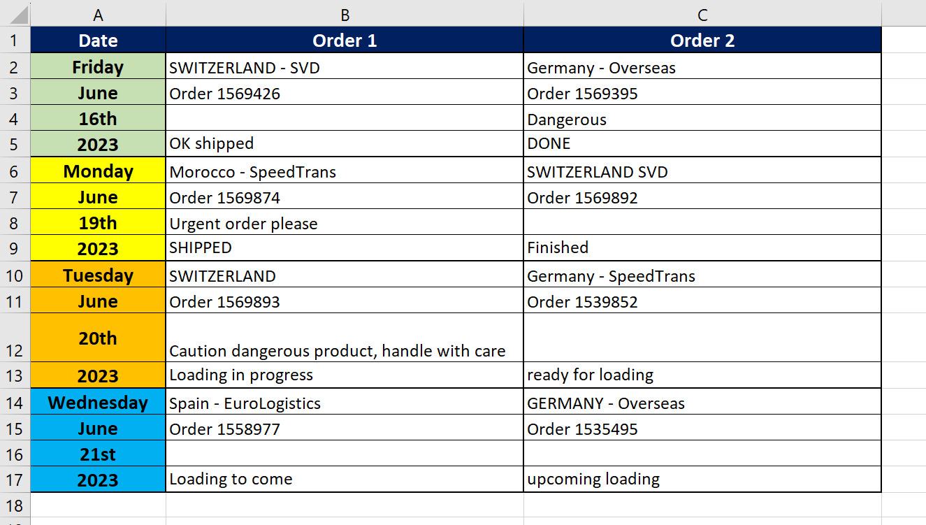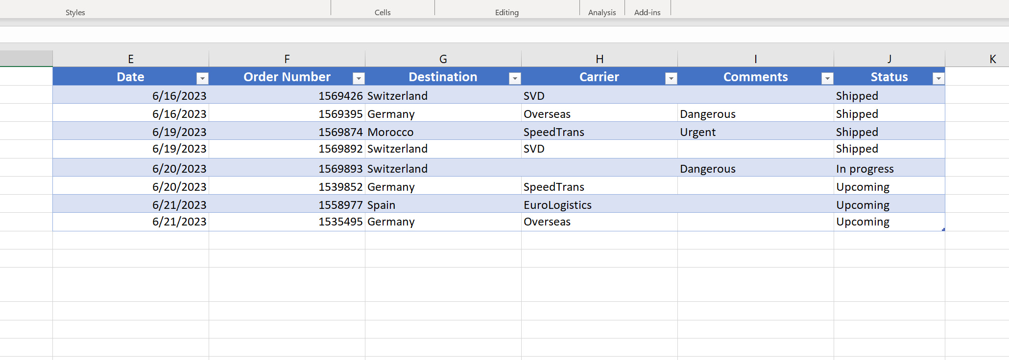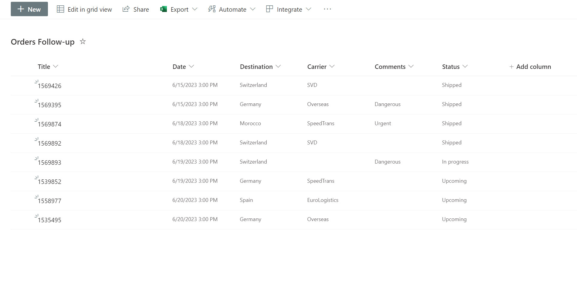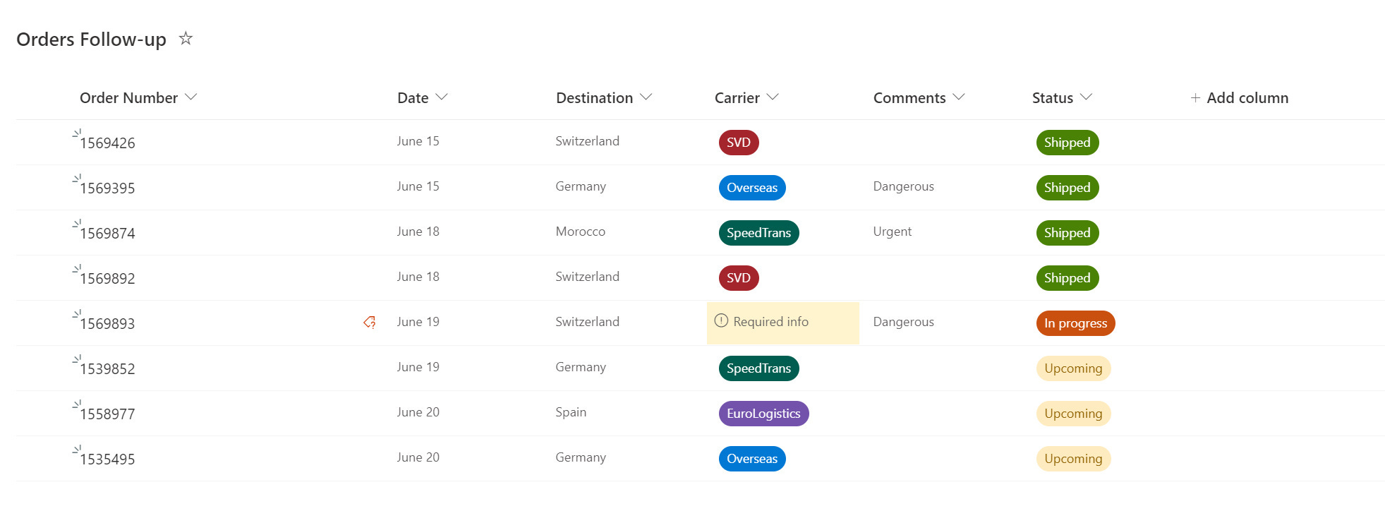I recommend assigning the "Title" type to the "Order number" column. This is because order numbers are unique, unlike dates. On the other hand, this is the most important piece of information in our records. The destination, status, etc. are only information that serves the order number.