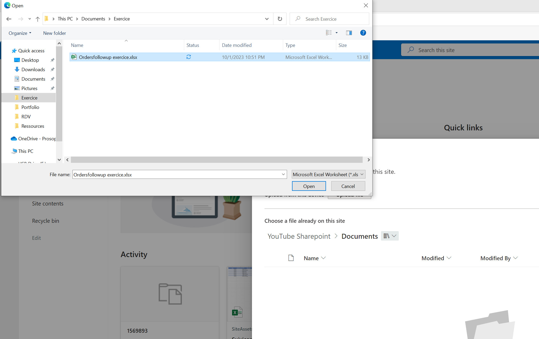 Click on "Upload file" to retrieve the Excel file we saved earlier (if you can't open it, you haven't closed the Excel file).