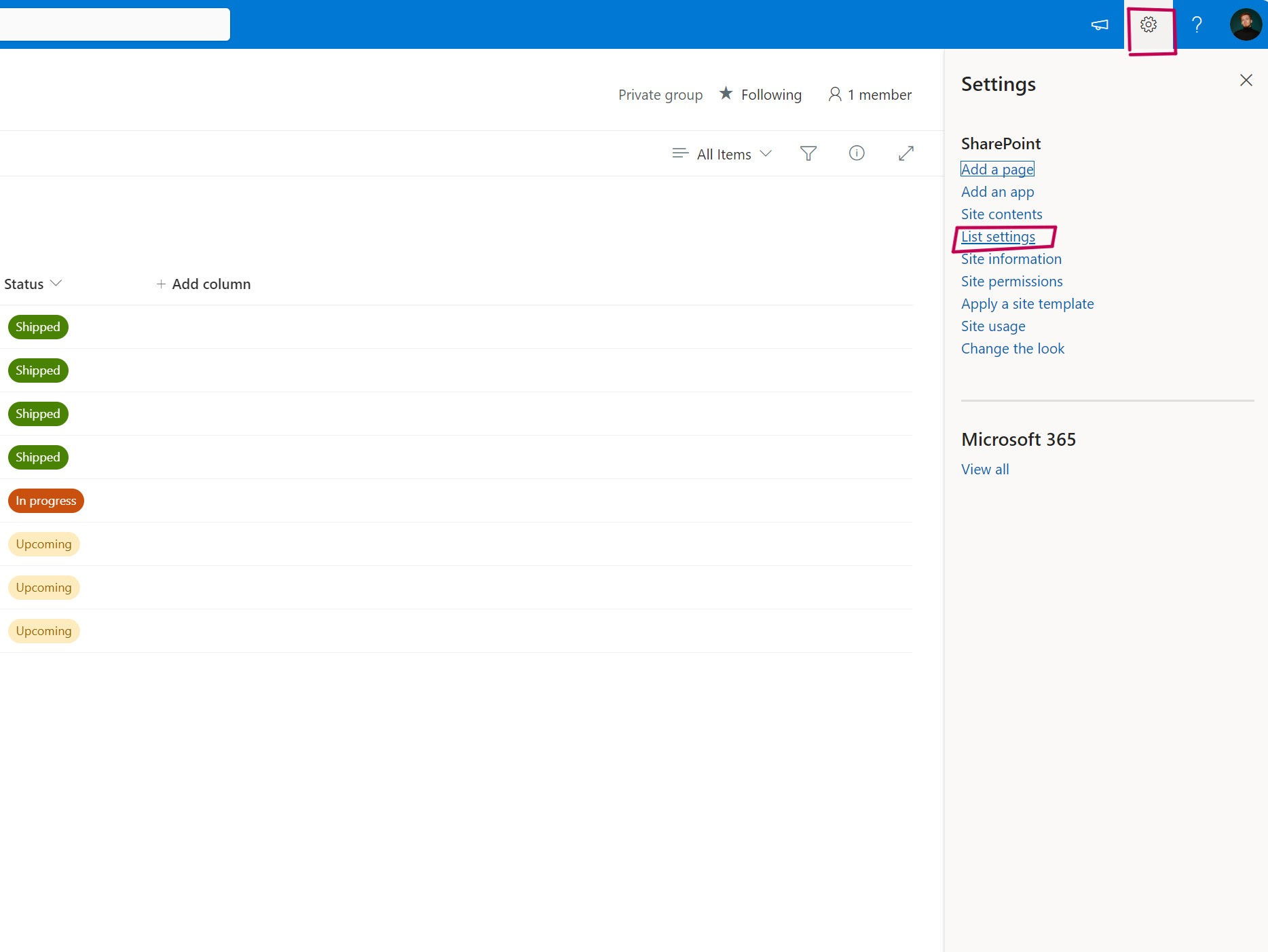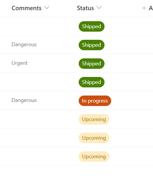 For example, write only: Shipped, In progress or Upcoming, as shown below.